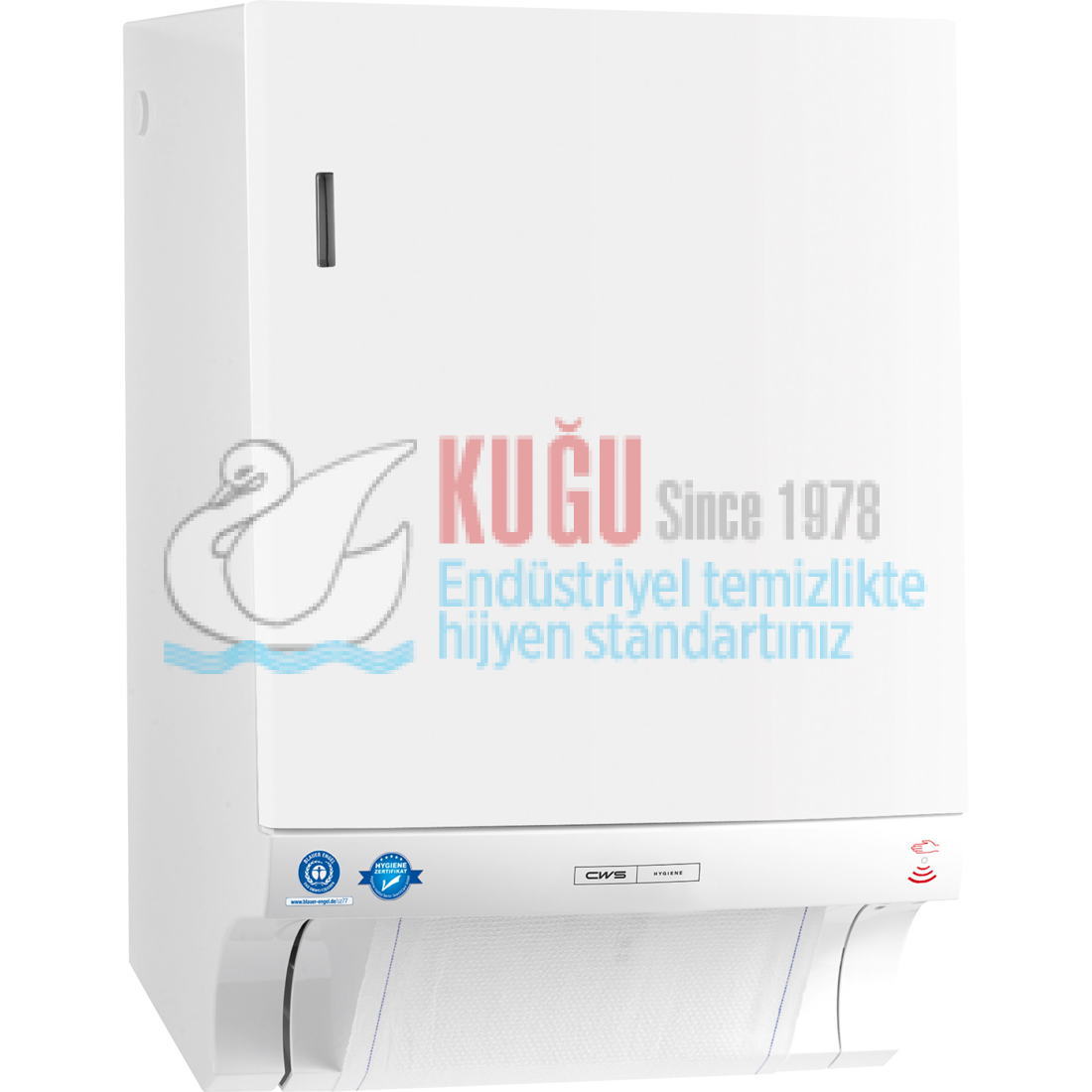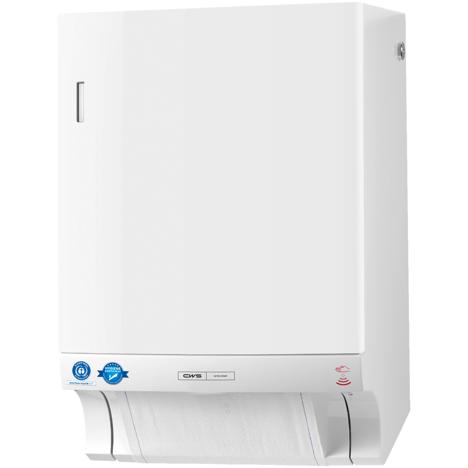 CWS Paradise Dry Non-Touch pamuklu havlu dispenseri, tuvalette sürdürülebilir, optimize edilmiş el hijyeni anlamına gelir. Pamuklu havluluk, “Blue Angel” çevre etiketi (RAL-UZ 77) ve hijyen sertifikası ile ödüllendirilmiştir. Pamuklu havluların kullanımı sadece kaynak tasarrufu sağlayan bir çözümü garanti etmekle kalmaz, aynı zamanda yüksek standartlı hijyen ile hoş bir el kurutması sağlar.