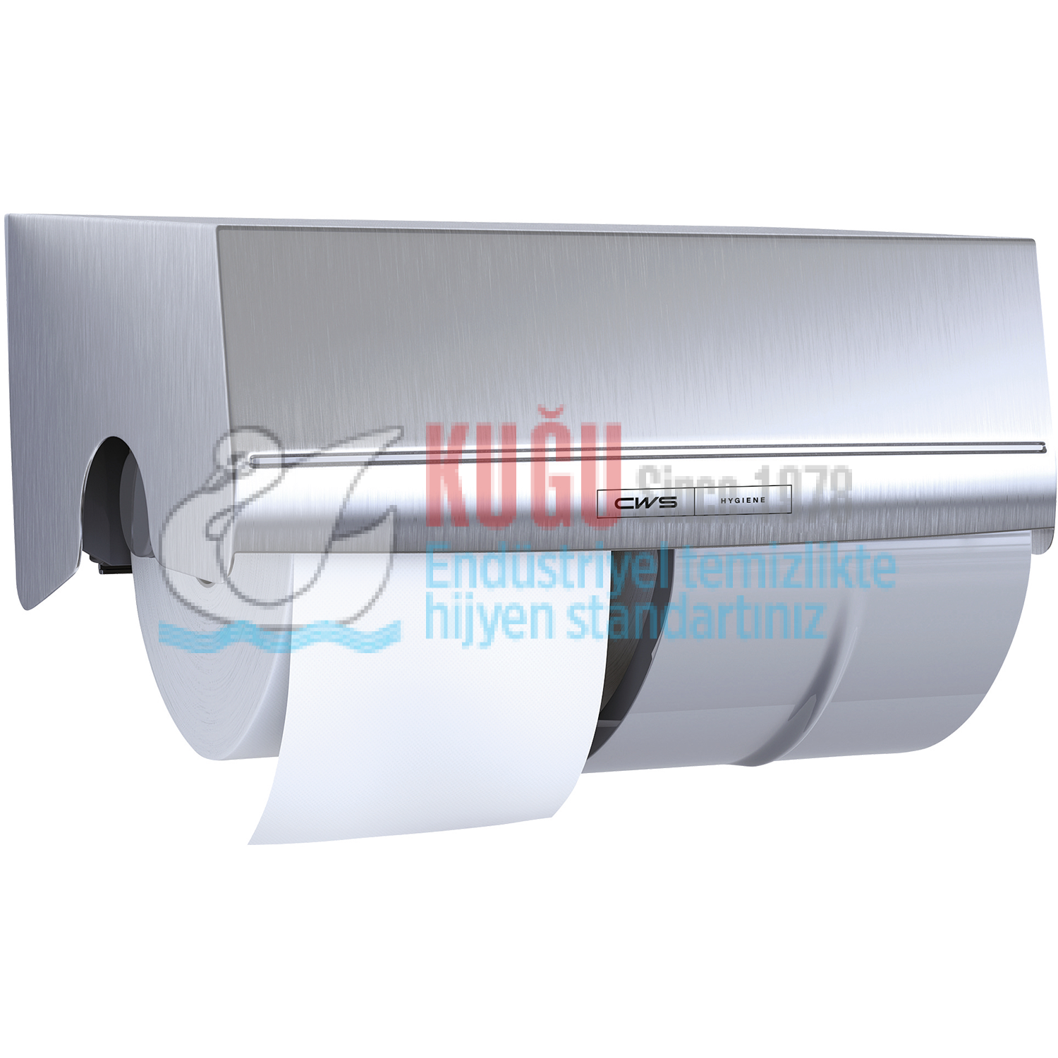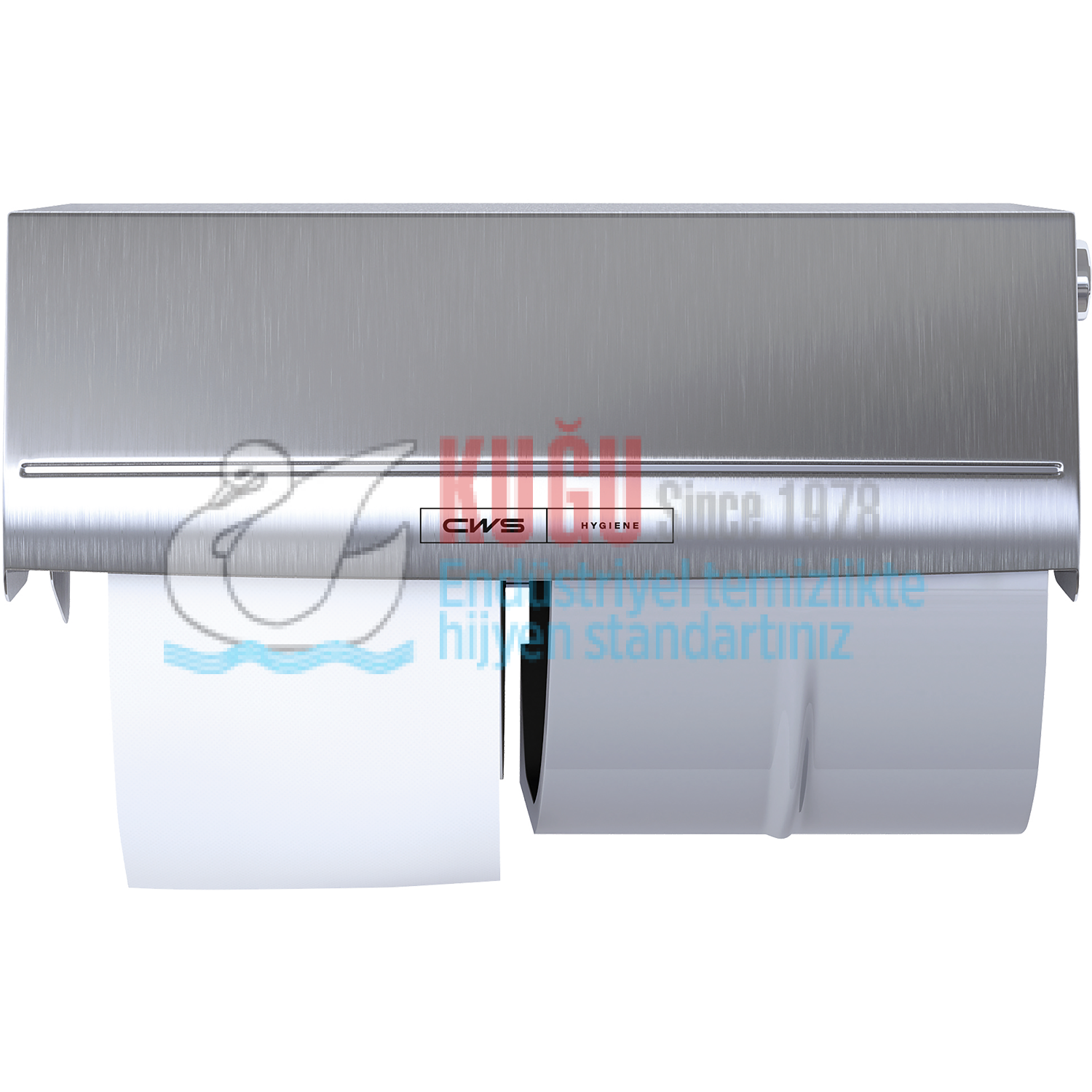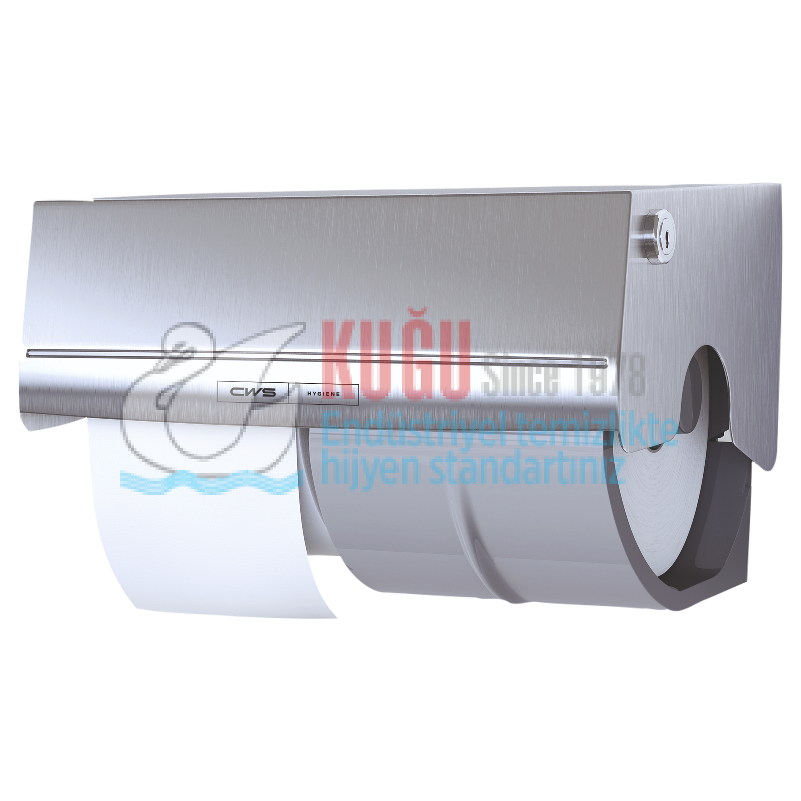 Paslanmaz Çelik Tuvalet Kağıdı, özellikle orta kullanım sıklığına sahip tuvaletler için uygundur. Tuvalet kağıdı tutucusunda iki rulo için yer vardır. Bu, vericide her zaman yeterli kağıt olmasını sağlar. Yedek rulo, tuvalet kağıdının boşa gitmesini önlemek için ancak ilk rulo bittikten sonra kullanılabilir. Bu, kağıdın sonsuz bir şekilde açılmasını önleyen entegre silindir freni ile de sağlanır. Bir kilit, dolgu malzemesinin çalınmasını önler.
